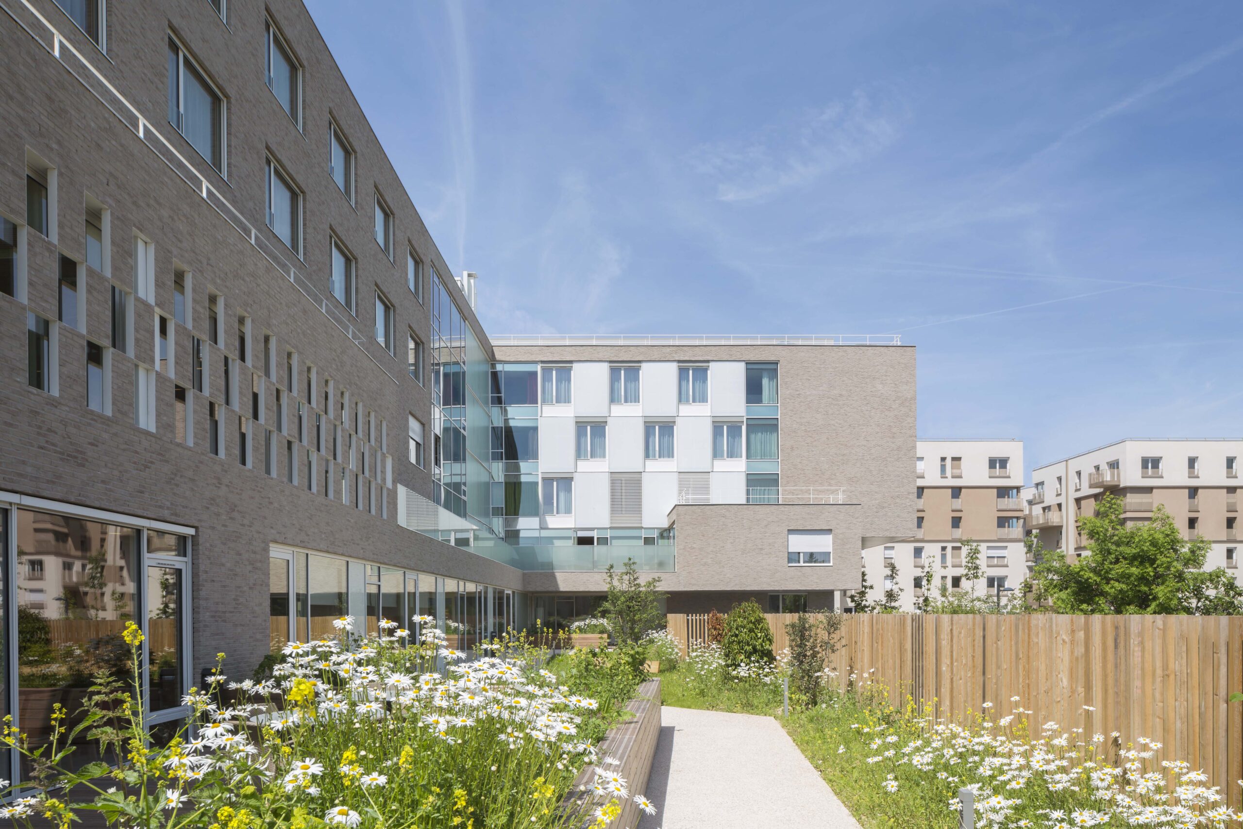 Les matériaux de façade (briques et menuiseries alu de teinte claire) illustrent la géologie d’un sous-sol gypseux.