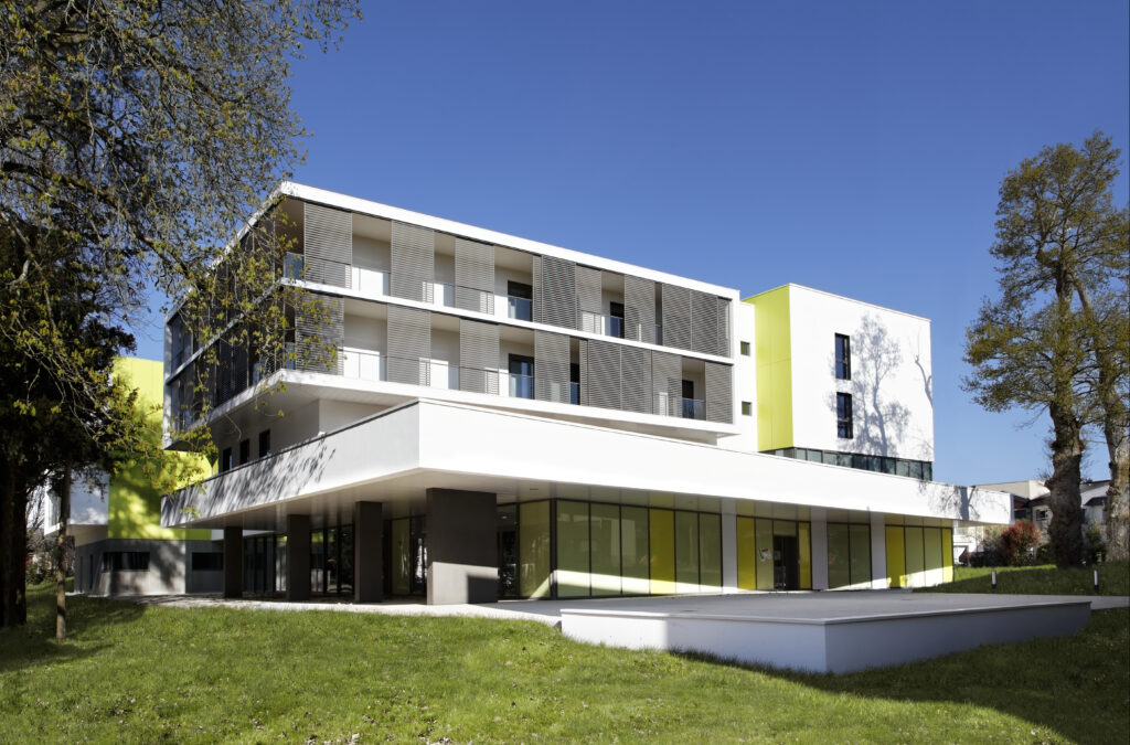 165 lits dont 25 lits médecine, 30 lits SSR, 96 lits Ehpad, 14 lits Upad, pharmacie, Radiologie, Cuisine centrale – HQE