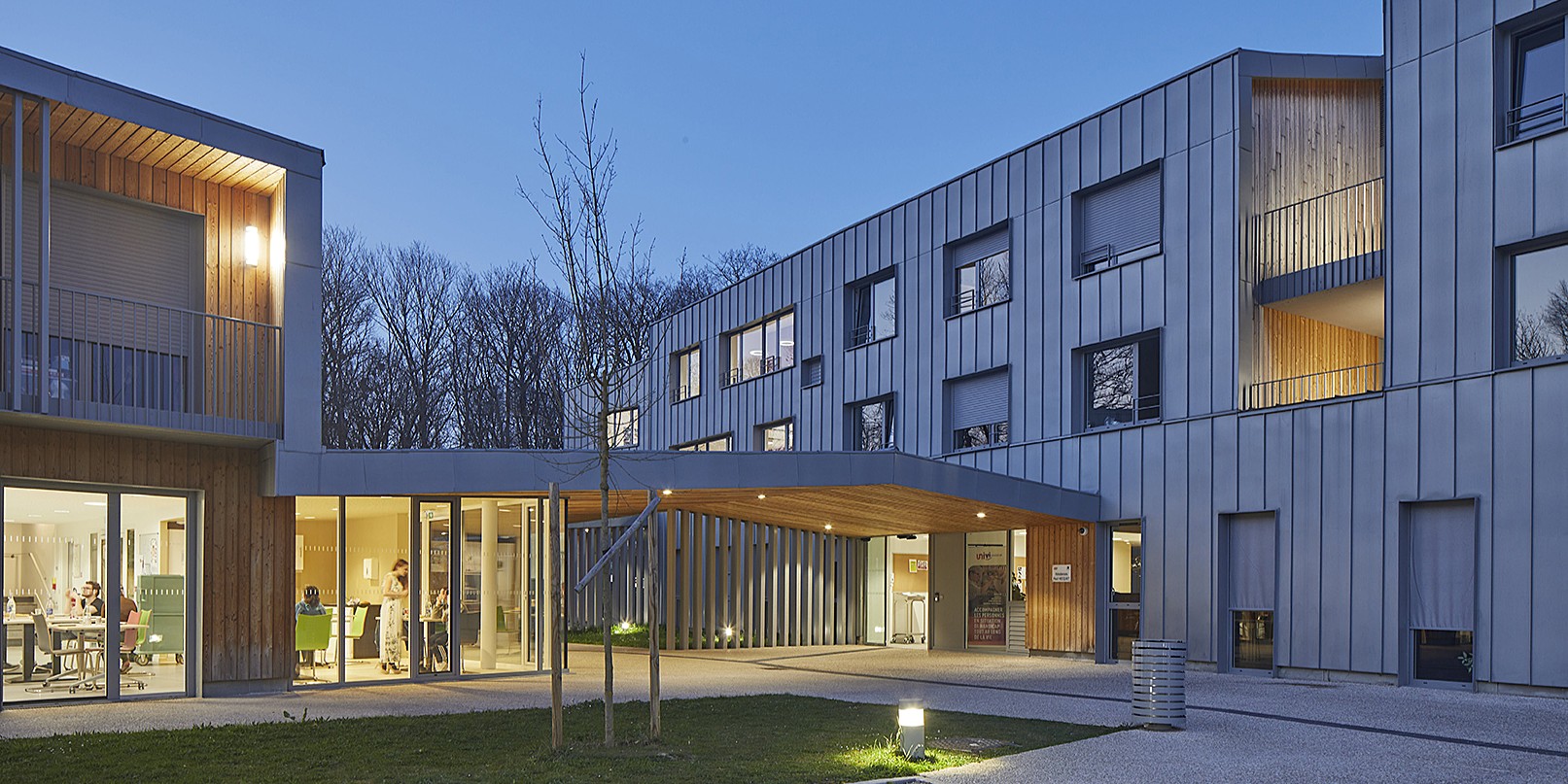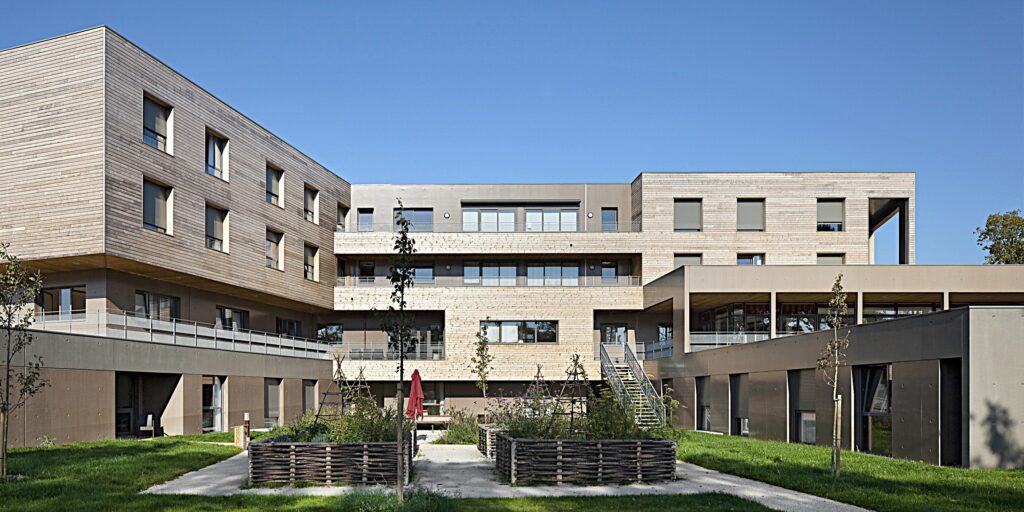 Maison d’accueil spécialisée de 62 lits, psychiatrie (unités de 15 chambres), accueil de jour, locaux de soins, bureaux, logistique